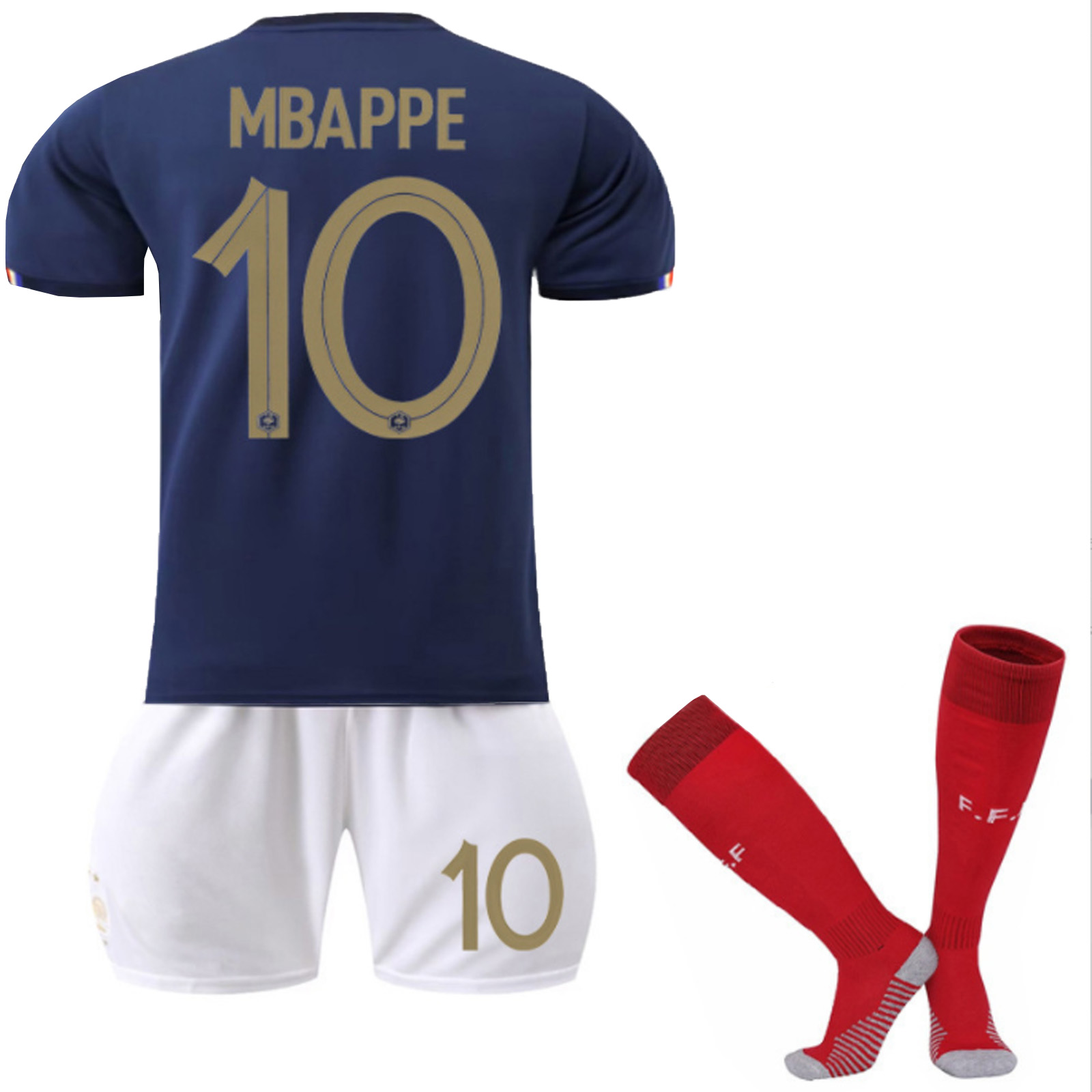 法国主场姆巴佩男女孩球衣,3 件套法国主10号+球袜,儿童青少年足球训练服套装